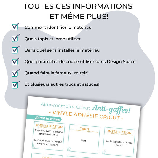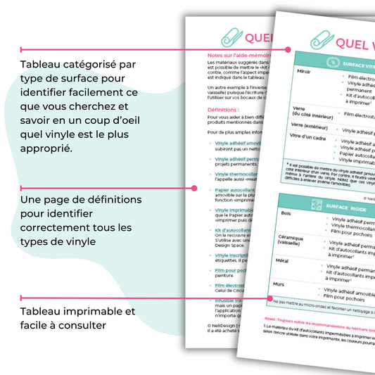 Aide-mémoire Cricut - Quel vinyle utiliser