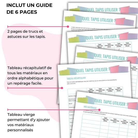 Aide-mémoire + Guide Cricut - Quel tapis utiliser